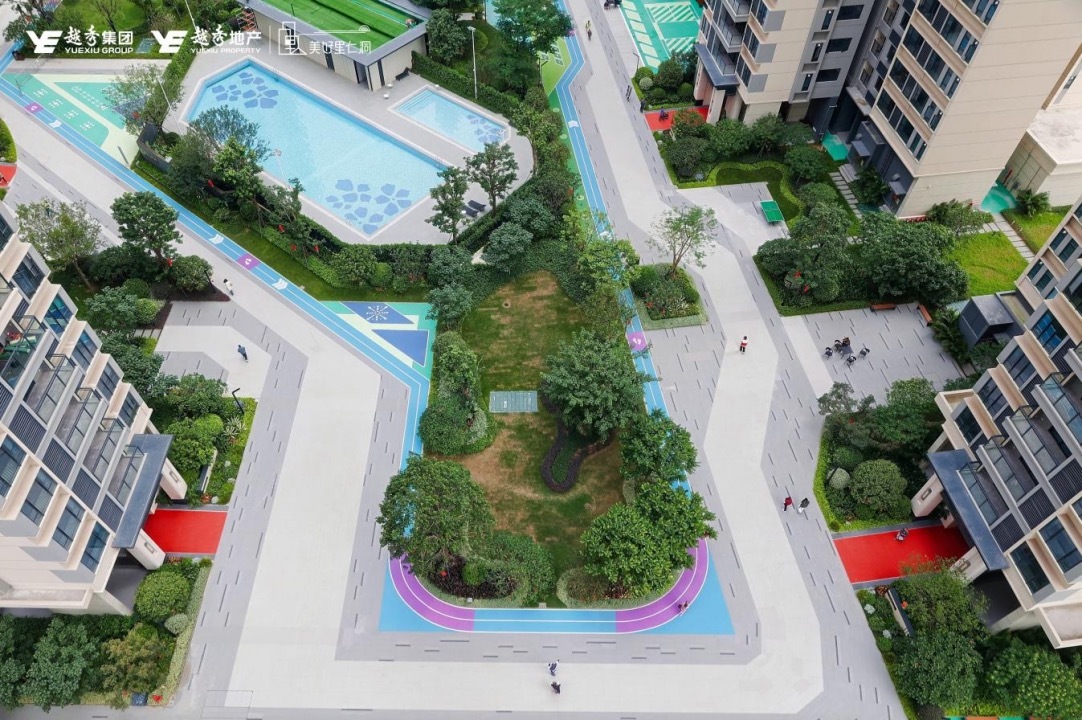 在配套设施上,社区内外各类配套应有尽有。社区周边高标准配建18班幼儿园、36班九年一贯制学校、敬老院、社区服务中心、肉菜市场和商业设施;社区内部设置约400米环形跑道、儿童游乐场、4个羽毛球场、游泳池和多处健身场地等,真正实现从“住有所居”到“住有优居”的升级。
