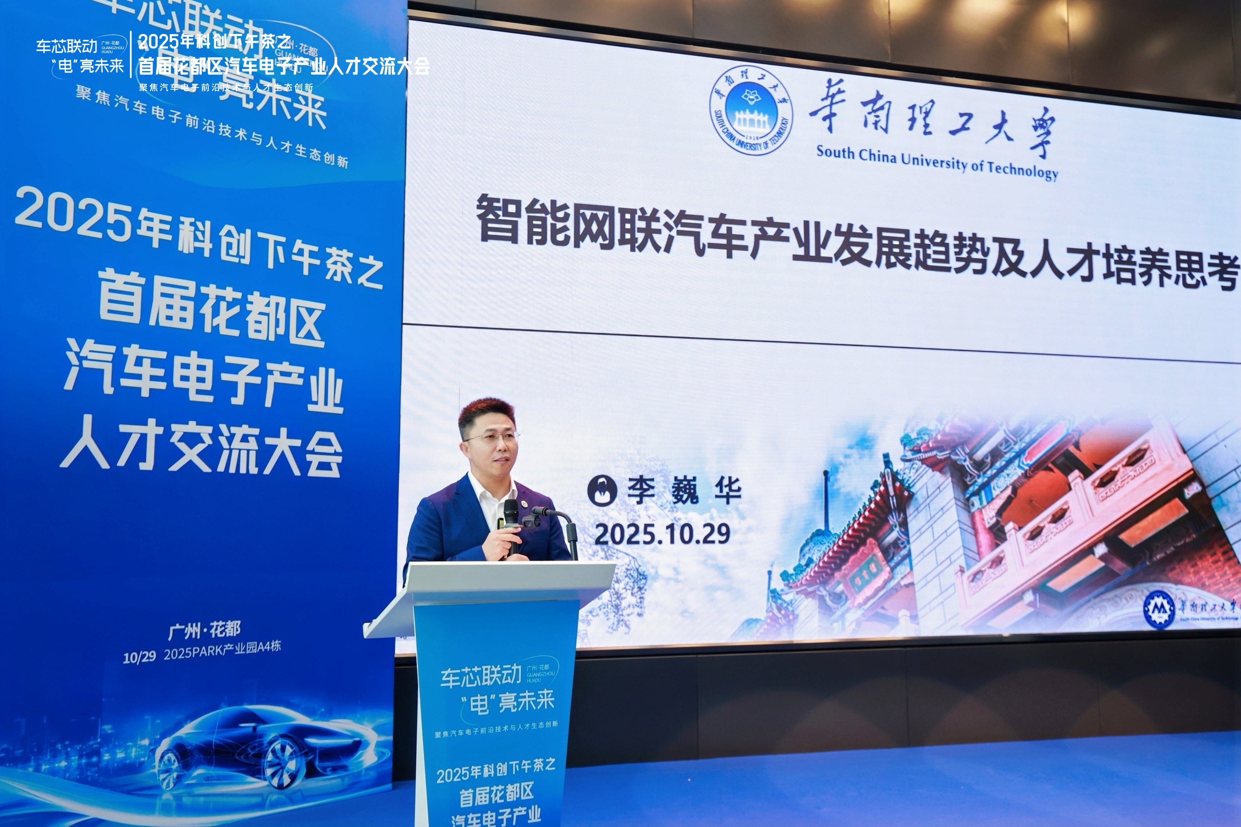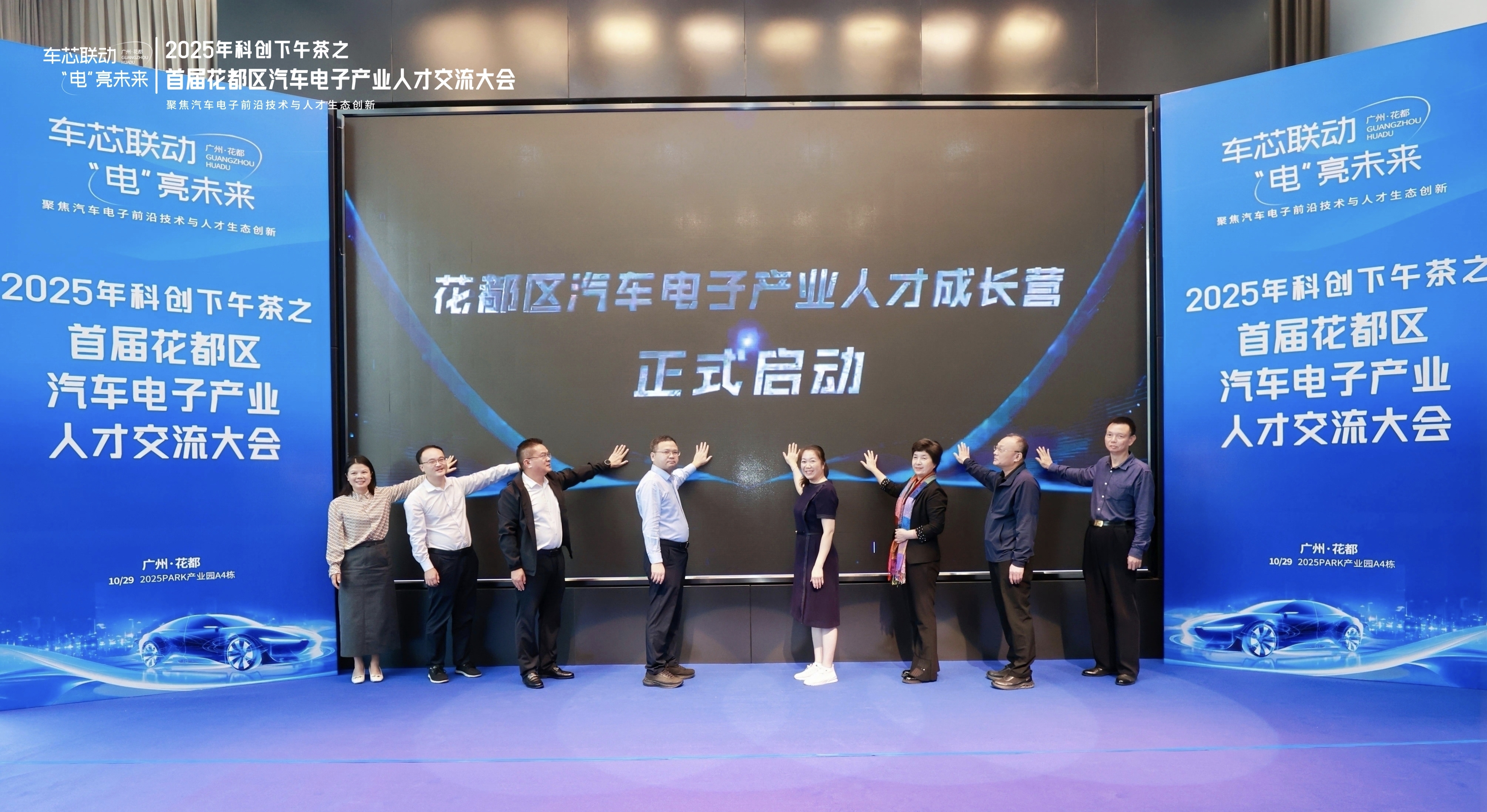 2025年10月29日下午,以“车芯联动·‘电’亮未来”为主题,首届花都区汽车电子产业人才交流大会在新雅街2025PARK产业园A4栋成功举办。本次活动在广州市科学技术协会、中共广州市花都区委组织部(区委人才办)、花都区人力资源和社会保障局的指导下,由新雅街党工委、花都汽车城管委会、广州花都海豚俱乐部等单位联合主办,是广州市花都区汽车电子产业人才联盟成立后的首届汽车电子产业交流盛会,标志着花都区在推动汽车电子产业人才集聚、构建产业新生态方面迈出关键一步。