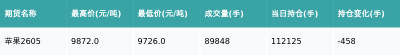 南财智讯2月13日电,盘后期货数据显示,郑州商品交易所的苹果主力合约收涨1.31%,收盘报9835.0元/吨,日内资金流入4.54亿元。其他相关指标见下表: